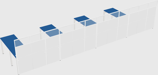 Prism Blue Shared L-Shaped Office Cubicle Panel System For 4 Persons