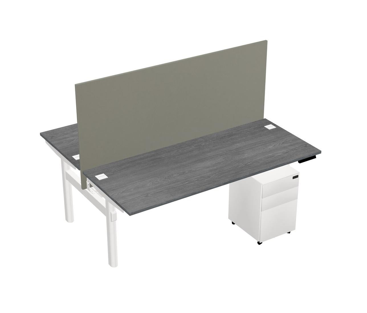 Grey Shared Dual Motor Electric Height Adjustable Desk With Metal Mobile Drawers And Desk Divider