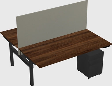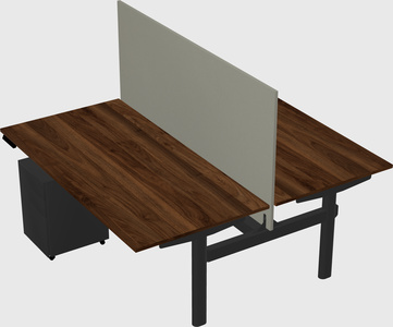 Columbia Walnut Shared Dual Motor Electric Height Adjustable Desk With Metal Mobile Drawers And Desk Divider