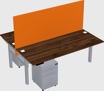 Columbia Walnut Shared Dual Motor Electric Height Adjustable Desk With Metal Mobile Drawers And Desk Divider