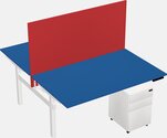 Green Shared Dual Motor Electric Height Adjustable Desk With Metal Mobile Drawers And Desk Divider