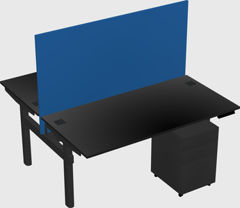 Black Shared Dual Motor Electric Height Adjustable Desk With Metal Mobile Drawers And Desk Divider