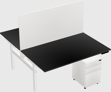 Black Shared Dual Motor Electric Height Adjustable Desk With Metal Mobile Drawers And Desk Divider