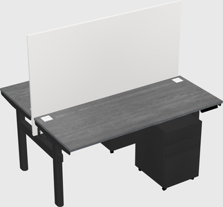 Grey Shared Dual Motor Electric Height Adjustable Desk With Metal Mobile Drawers And Desk Divider