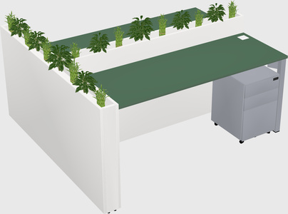 Green Rectangular Shared Office Desk System Metal Mobile Drawers (Pots & Plants Sold Separately)