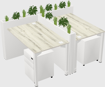Heinne Holz Rectangular Shared Office Desk System Metal Mobile Drawers (Pots & Plants Sold Separately)