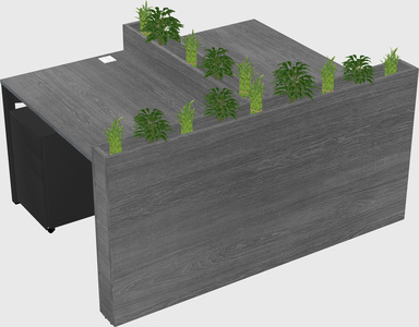 Grey Rectangular Shared Office Desk System Metal Mobile Drawers (Pots & Plants Sold Separately)