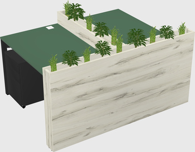 Green Rectangular Shared Office Desk System Metal Mobile Drawers (Pots & Plants Sold Separately)