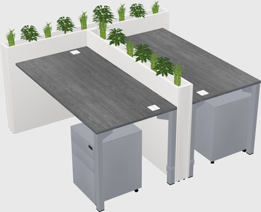 Grey Rectangular Shared Office Desk System Metal Mobile Drawers (Pots & Plants Sold Separately)