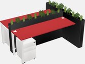 Prism Red Rectangular Shared Office Desk System Metal Mobile Drawers (Pots & Plants Sold Separately)