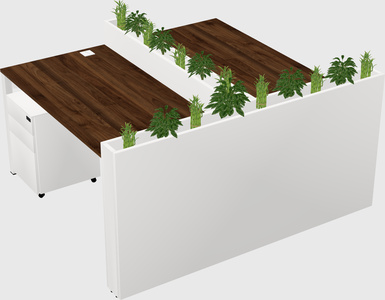 Columbia Walnut Rectangular Shared Office Desk System Metal Mobile Drawers (Pots & Plants Sold Separately)