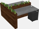 Columbia Walnut Rectangular Shared Office Desk System Metal Mobile Drawers (Pots & Plants Sold Separately)