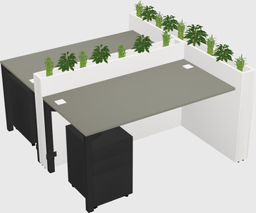 Grey Shadows Rectangular Shared Office Desk System Metal Mobile Drawers (Pots & Plants Sold Separately)