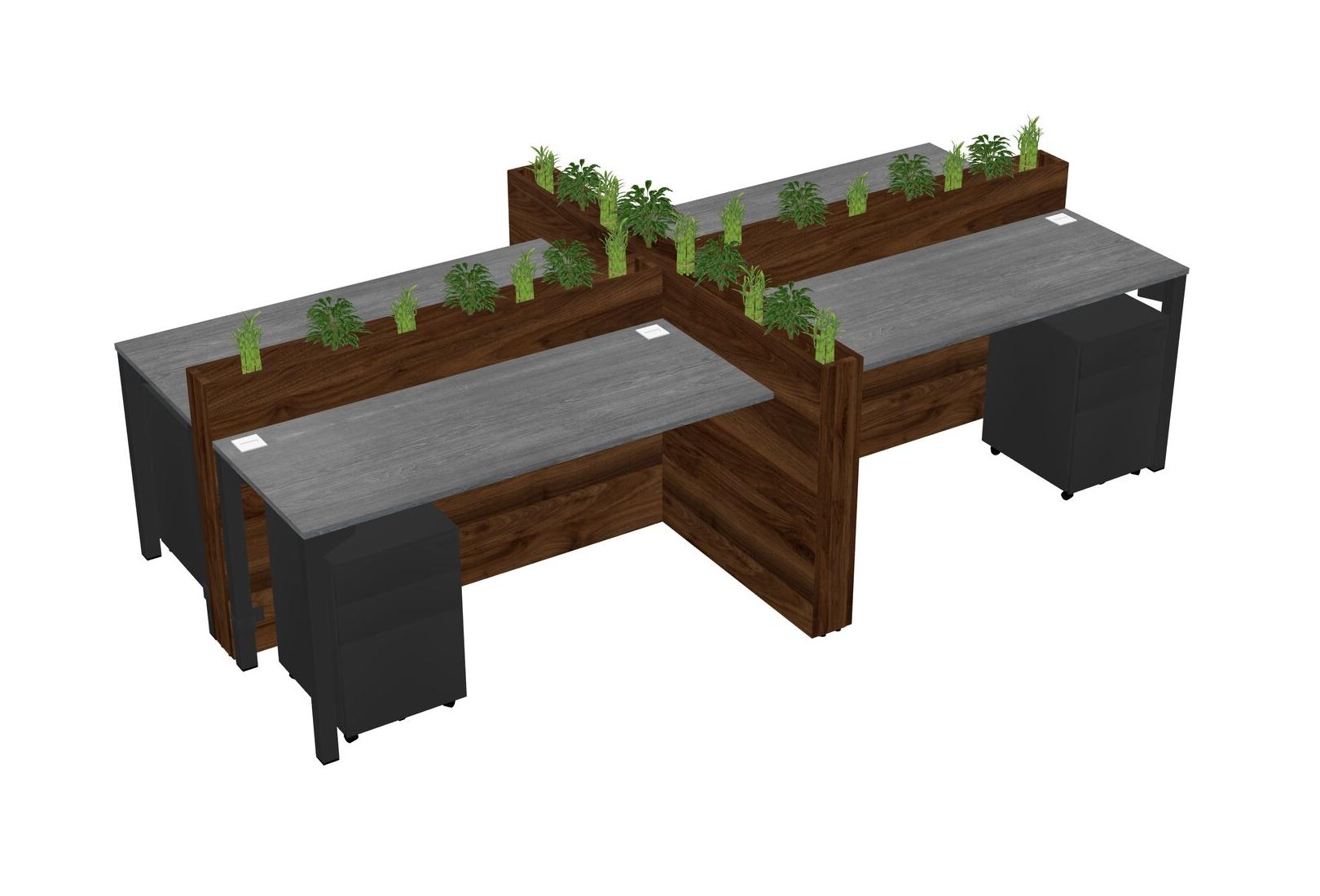 Grey Rectangular Shared Office Desk For 4 Persons Let Nature Help Flourish Your Productivity The Base Comes With An Adjustable Shelf To Provide Space For Pots (Pots & Plants Sold Separately)