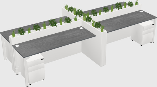 Grey Rectangular Shared Office Desk For 4 Persons Let Nature Help Flourish Your Productivity The Base Comes With An Adjustable Shelf To Provide Space For Pots (Pots & Plants Sold Separately)