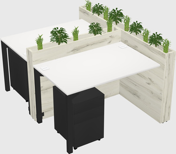 White Rectangular Shared Office Desk For 4 Persons Let Nature Help Flourish Your Productivity The Base Comes With An Adjustable Shelf To Provide Space For Pots (Pots & Plants Sold Separately)