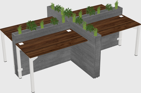 Columbia Walnut Rectangular Shared Office Desk For 4 Persons Let Nature Help Flourish Your Productivity The Base Comes With An Adjustable Shelf To Provide Space For Pots (Pots & Plants Sold Separately)