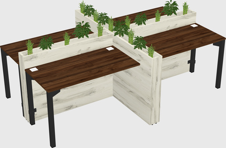 Columbia Walnut Rectangular Shared Office Desk For 4 Persons Let Nature Help Flourish Your Productivity The Base Comes With An Adjustable Shelf To Provide Space For Pots (Pots & Plants Sold Separately)