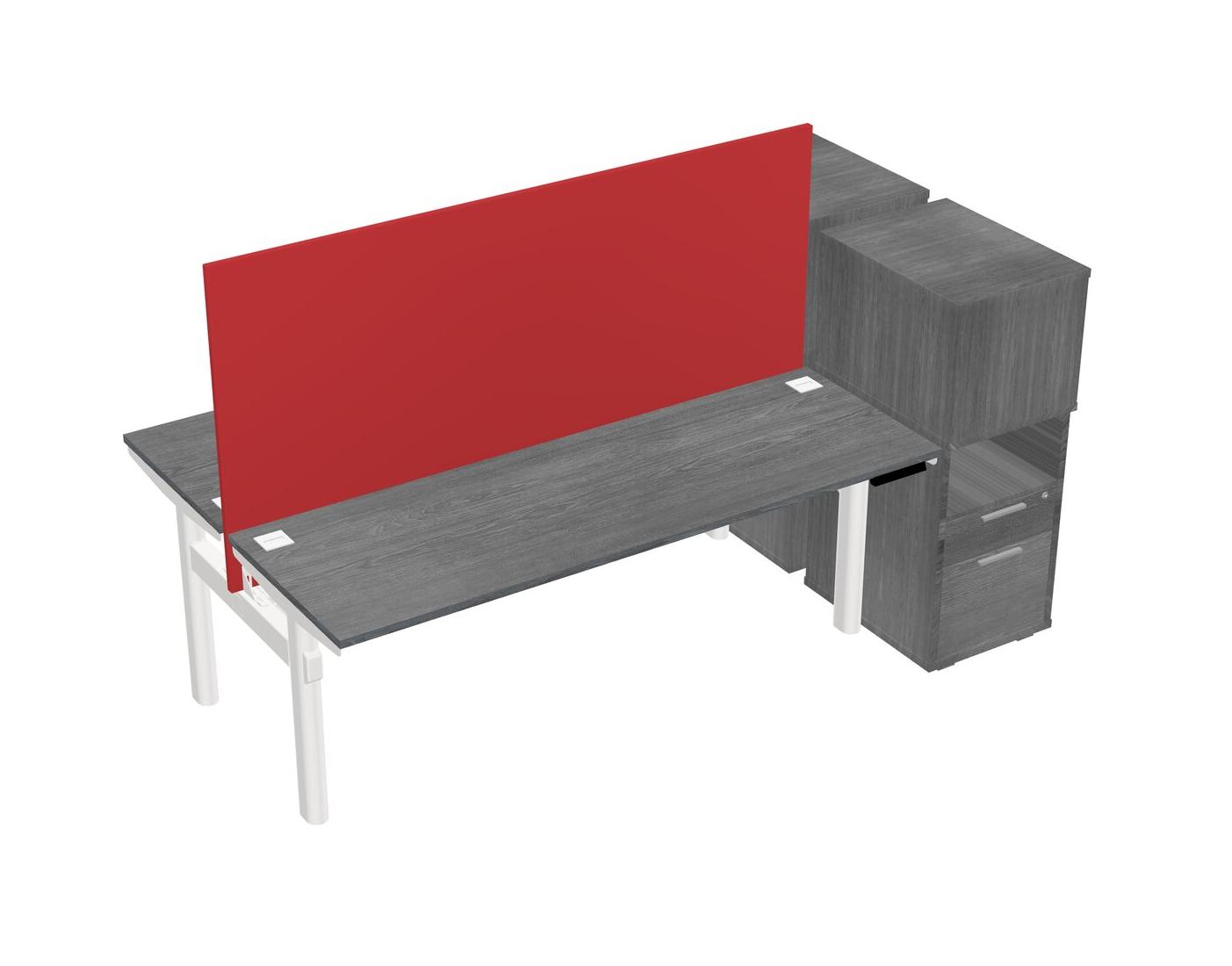 Grey Shared Dual Motor Electric Height Adjustable Desks With Side Cabinets For 2 Persons