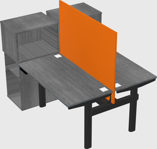 Grey Shared Dual Motor Electric Height Adjustable Desks With Side Cabinets For 2 Persons