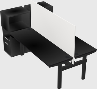Black Shared Dual Motor Electric Height Adjustable Desks With Side Cabinets For 2 Persons