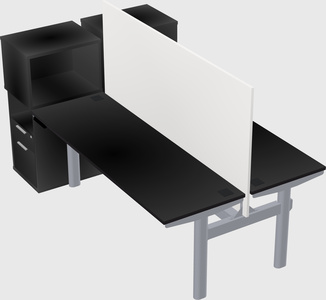 Black Shared Dual Motor Electric Height Adjustable Desks With Side Cabinets For 2 Persons