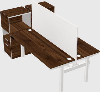 Columbia Walnut Shared Dual Motor Electric Height Adjustable Desks With Side Cabinets For 2 Persons