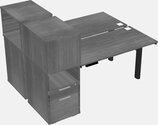 Grey Shared Dual Motor Electric Height Adjustable Desks With Side Cabinets For 2 Persons