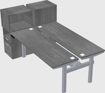 Grey Shared Dual Motor Electric Height Adjustable Desks With Side Cabinets For 2 Persons
