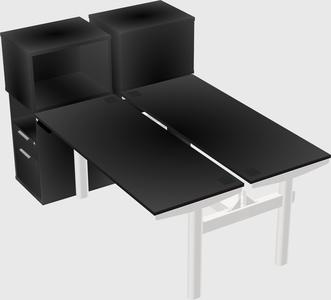 Black Shared Dual Motor Electric Height Adjustable Desks With Side Cabinets For 2 Persons