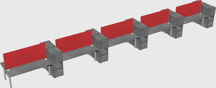 Grey Shared Dual Motor Electric Height Adjustable Desks With Side Cabinets For 10 Persons