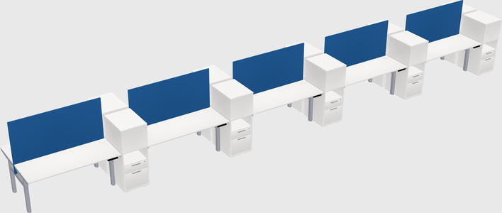 White Shared Dual Motor Electric Height Adjustable Desks With Side Cabinets For 10 Persons