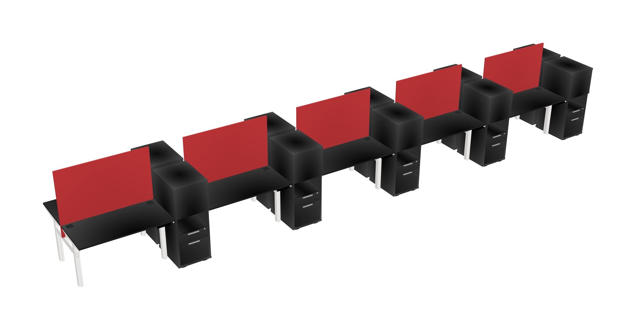 Black Shared Dual Motor Electric Height Adjustable Desks With Side Cabinets For 10 Persons