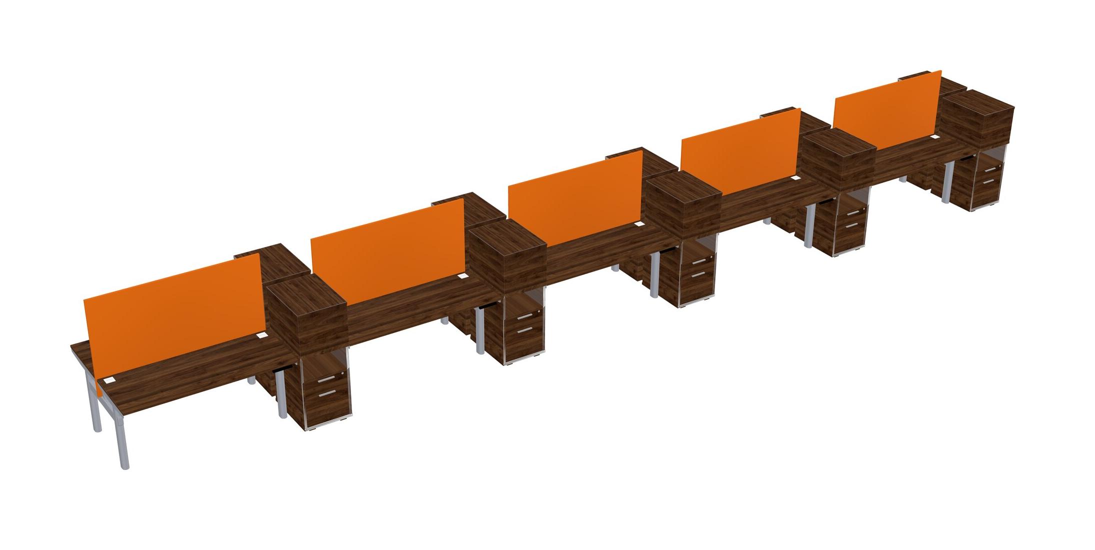 Columbia Walnut Shared Dual Motor Electric Height Adjustable Desks With Side Cabinets For 10 Persons