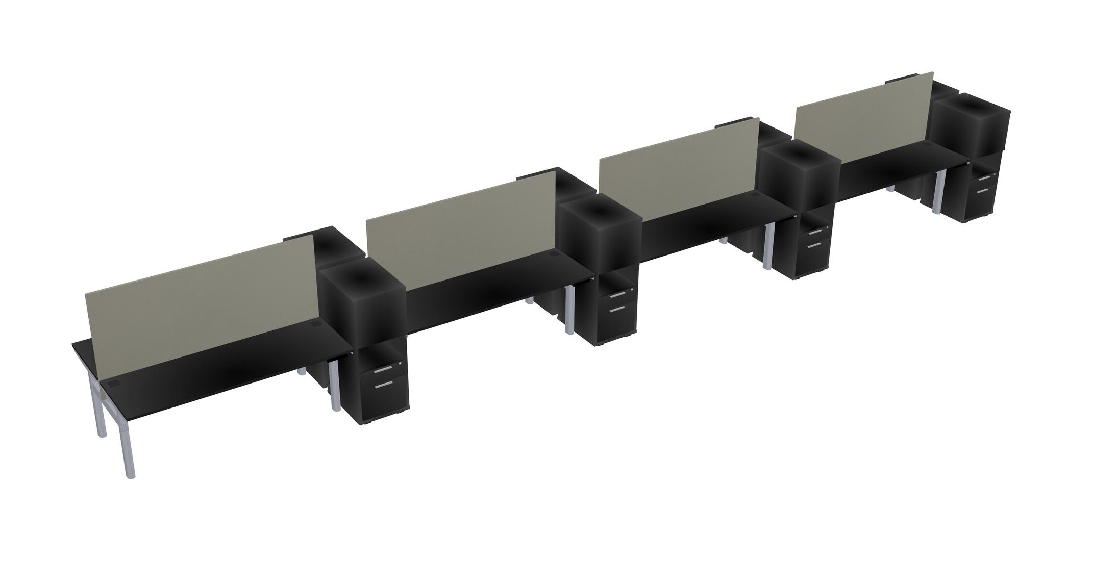Black Shared Dual Motor Electric Height Adjustable Desks With Side Cabinets For 8 Persons
