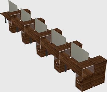 Columbia Walnut Shared Dual Motor Electric Height Adjustable Desks With Side Cabinets For 10 Persons