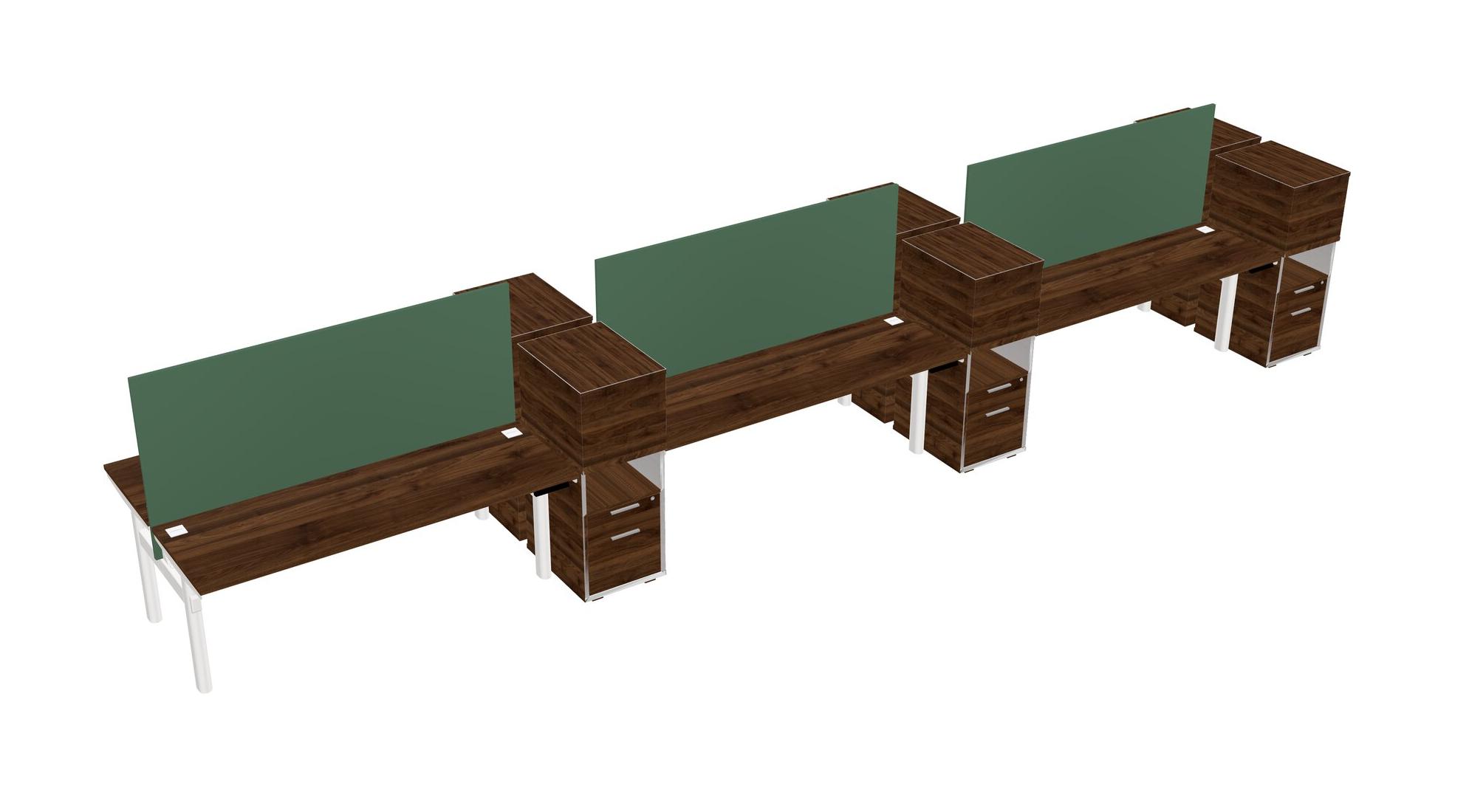 Columbia Walnut Shared Dual Motor Electric Height Adjustable Desks With Side Cabinets For 6 Persons