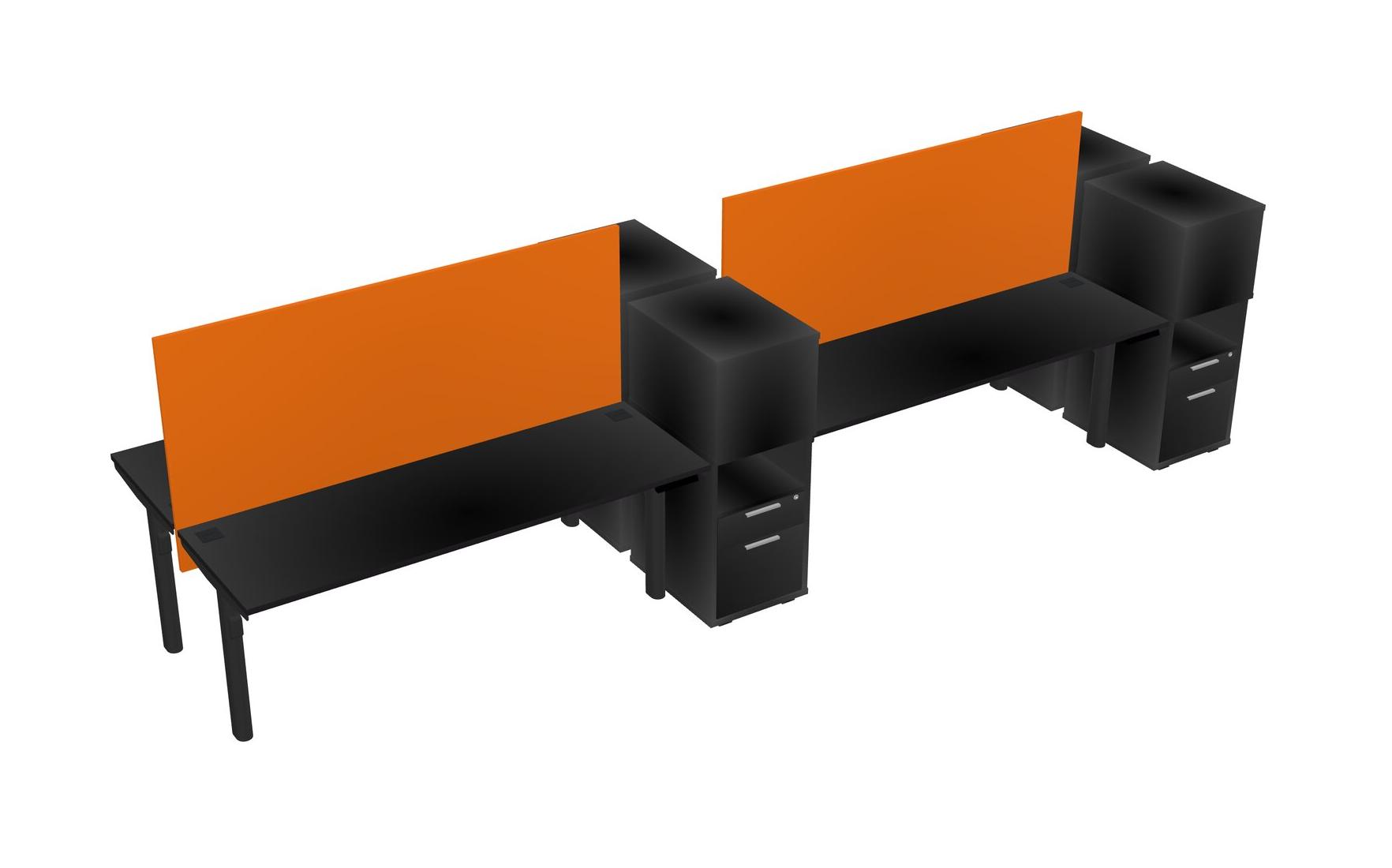 Black Shared Dual Motor Electric Height Adjustable Desks With Side Cabinets For 4 Persons