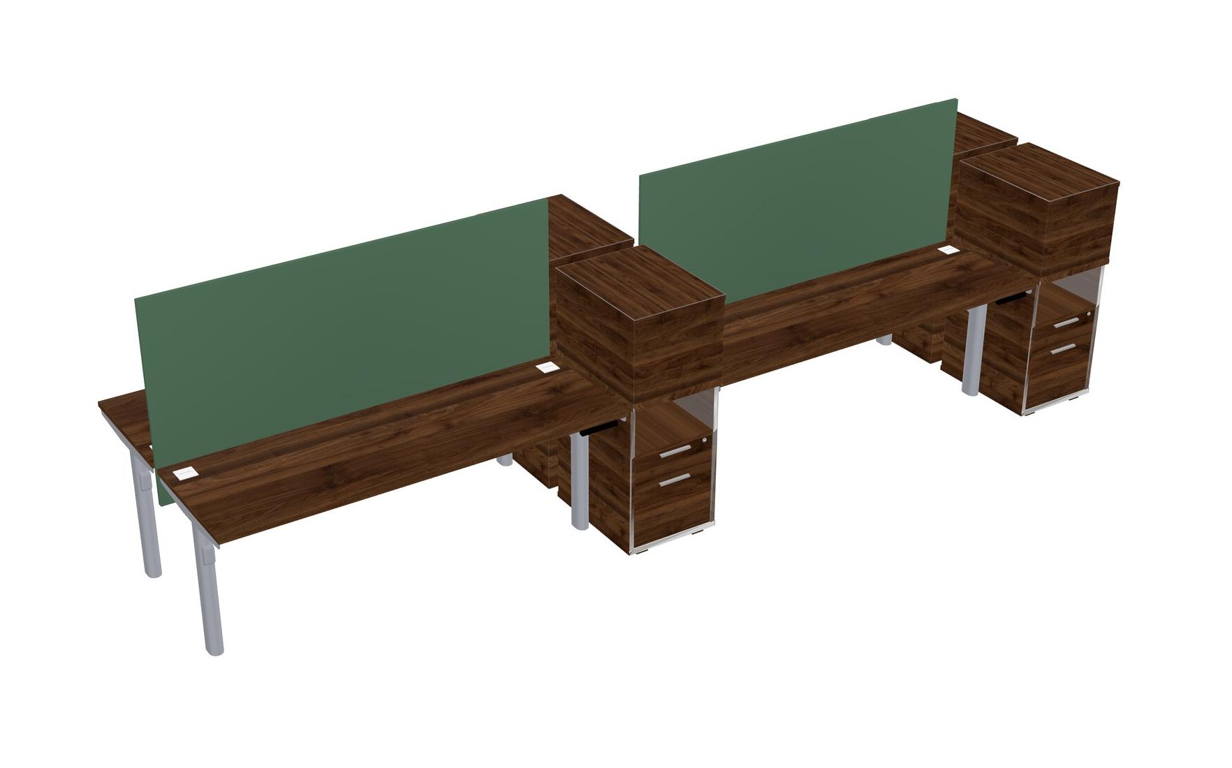 Columbia Walnut Shared Dual Motor Electric Height Adjustable Desks With Side Cabinets For 4 Persons