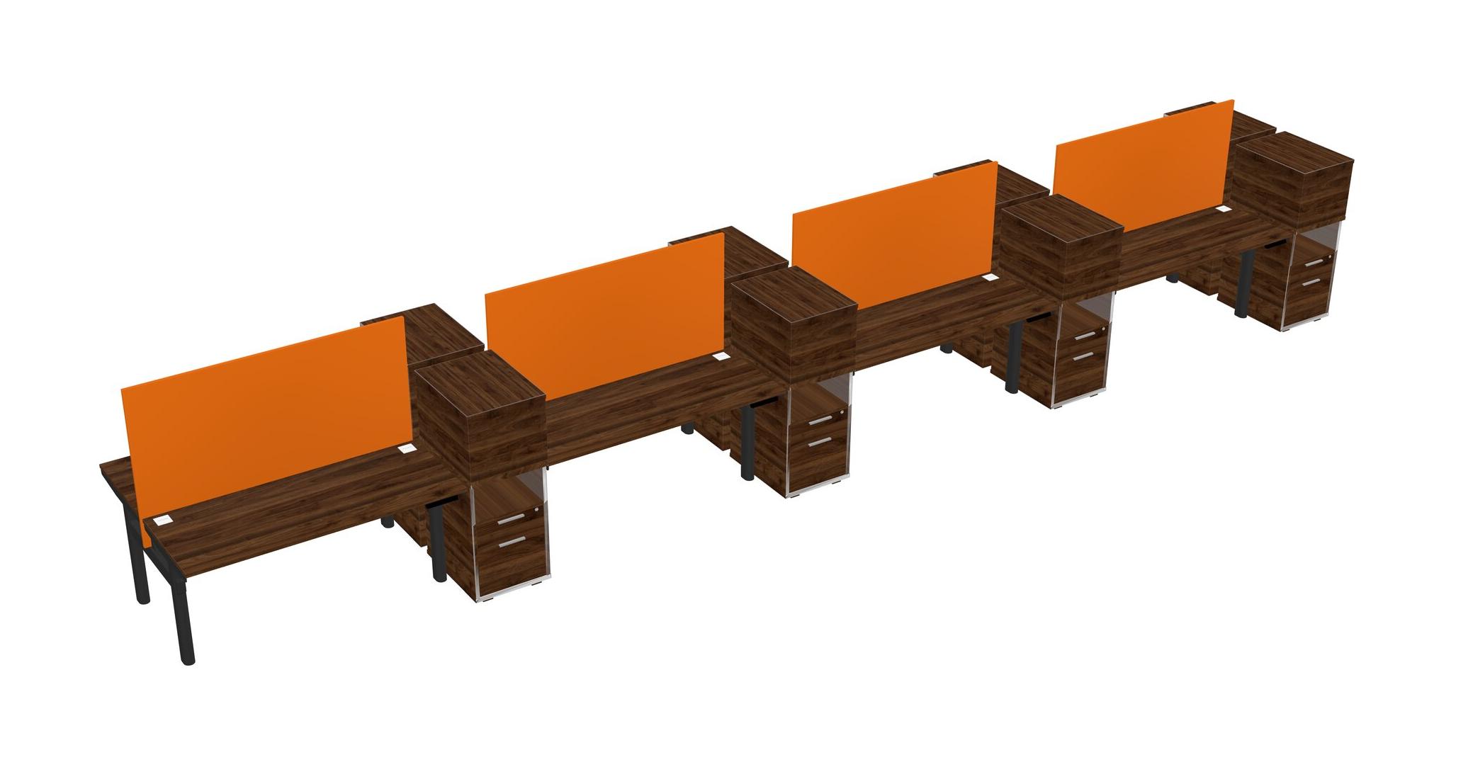Columbia Walnut Shared Dual Motor Electric Height Adjustable Desks With Side Cabinets For 8 Persons