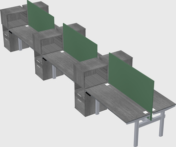 Grey Shared Dual Motor Electric Height Adjustable Desks With Side Cabinets For 6 Persons