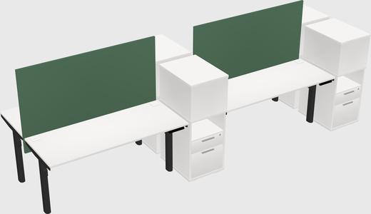 White Shared Dual Motor Electric Height Adjustable Desks With Side Cabinets For 4 Persons