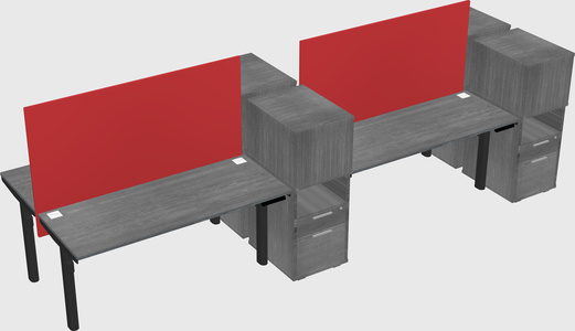 Grey Shared Dual Motor Electric Height Adjustable Desks With Side Cabinets For 4 Persons