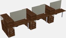 Columbia Walnut Shared Dual Motor Electric Height Adjustable Desks With Side Cabinets For 6 Persons