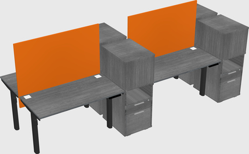 Grey Shared Dual Motor Electric Height Adjustable Desks With Side Cabinets For 4 Persons