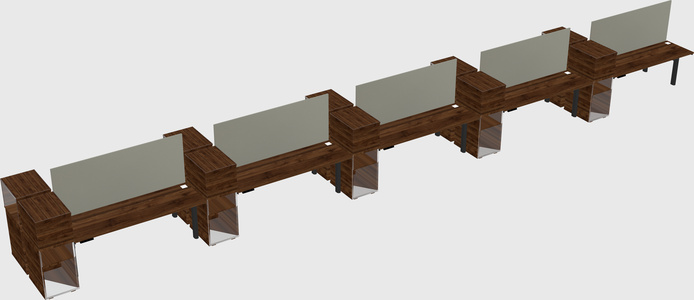 Columbia Walnut Shared Dual Motor Electric Height Adjustable Desks With Side Cabinets For 10 Persons