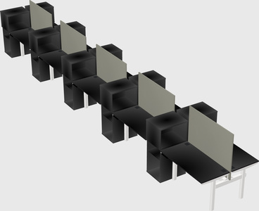 Black Shared Dual Motor Electric Height Adjustable Desks With Side Cabinets For 10 Persons