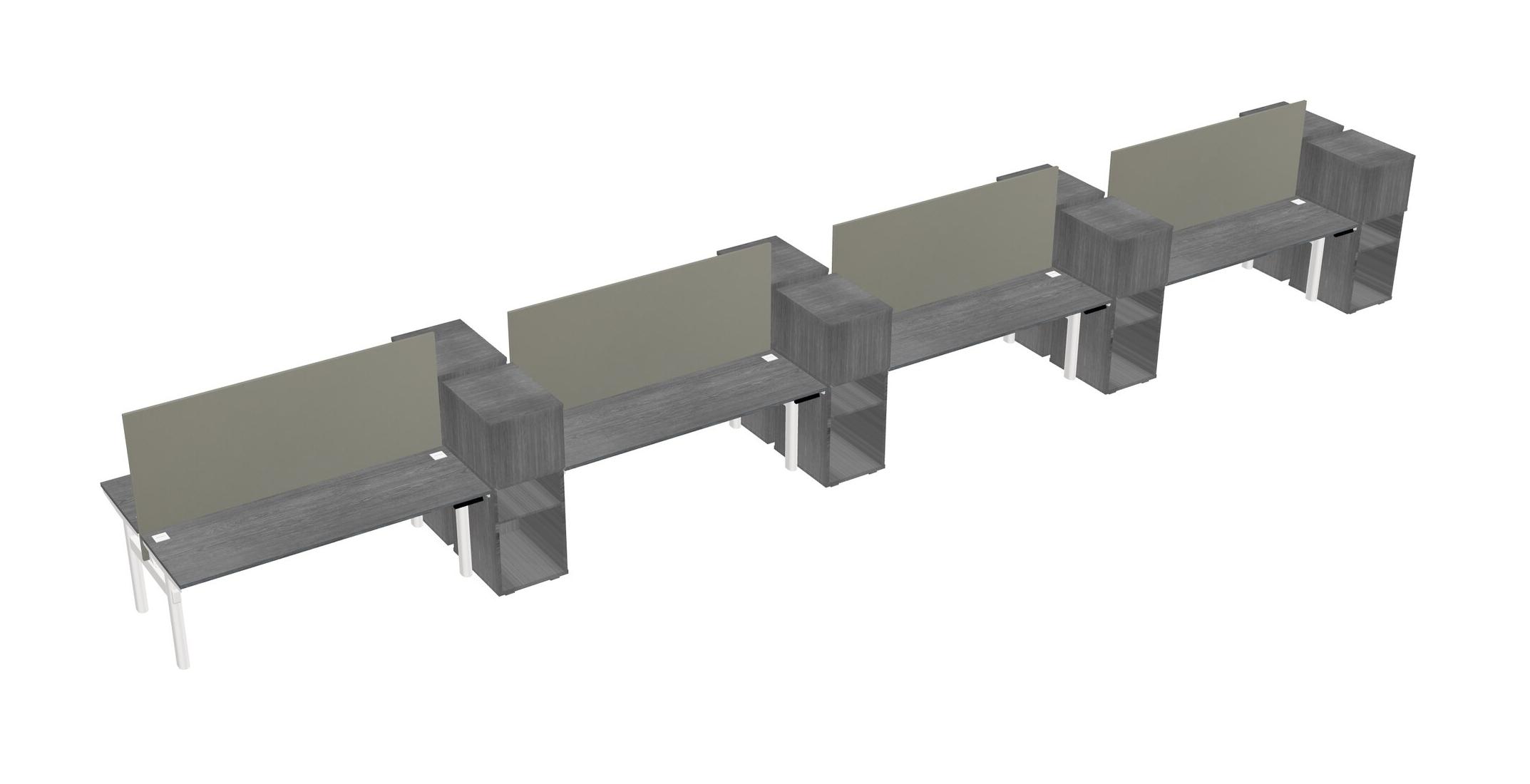 Grey Shared Dual Motor Electric Height Adjustable Desks With Side Cabinets For 8 Persons