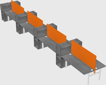 Grey Shared Dual Motor Electric Height Adjustable Desks With Side Cabinets For 8 Persons