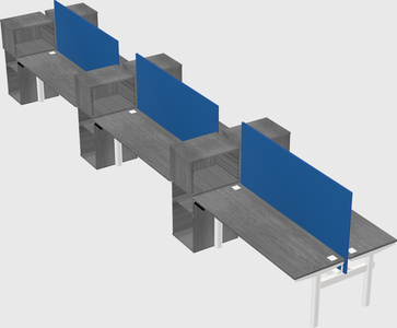 Grey Shared Dual Motor Electric Height Adjustable Desks With Side Cabinets For 6 Persons